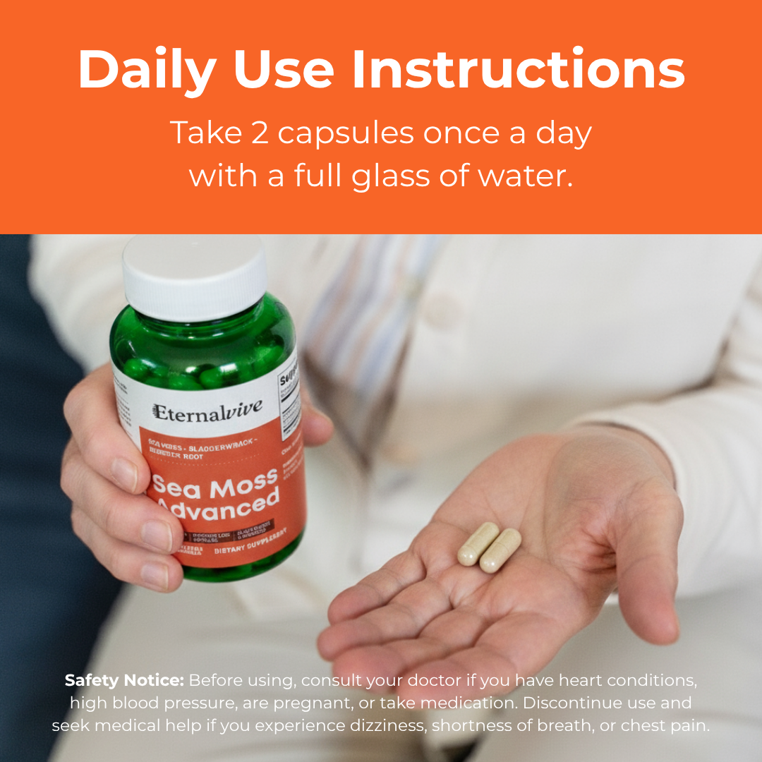 Nourish your body, boost your energy, and support your overall wellness with Eternalvive Sea Moss Advanced a gentle yet powerful daily supplement designed to promote balance, immunity, and vitality from within.